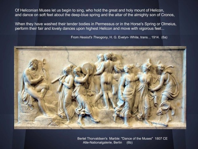 Here is a marble portrayal of one of the greatest Epic poems ever written. A young shepherd named Hesiod begins to sing the story of that day, about three thousand years ago, when he saw the nine Muses of Helicon bathing and dancing in the fields.